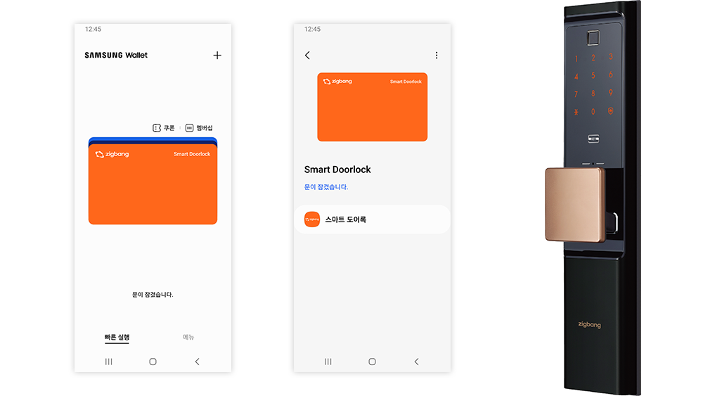 UWB 디지털 홈 키가 삼성페이에 탑재됨에 따라, 직방 UWB 스마트 도어록을 설치한 삼성페이 사용자는 도어록에 접근하는 것만으로도 간편하게 집의 문을 열수 있다.