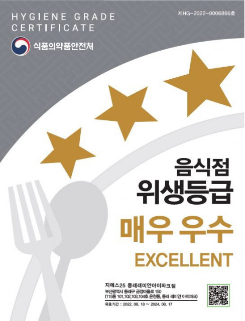 로봇 치킨을 운영하는 편의점 GS25 동래래미안아이파크점은 8월 슈퍼마켓 GS더프레시검단신도시점은 11월에 음식점 위생 등급제에서 매우 우수를 지정받았다.