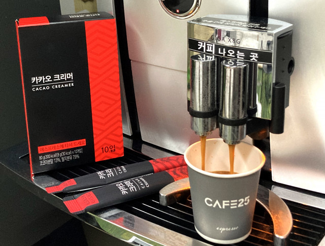 이번에 새롭게 출시하는 카페25 ‘카카오에스프레소’는 에스프레소에 달콤한 카카오파우더를 가미한 스트라파짜토의 콘셉트를 편의점에 맞게 구현한 상품으로 별도의 카카오크리머를 추가해야 한다. 스트라파짜토는 이탈리아 남부 나폴리식 에스프레소로 알려져 있으며 코코아파우더를 자연스럽게 토핑한 것이 특징이다.