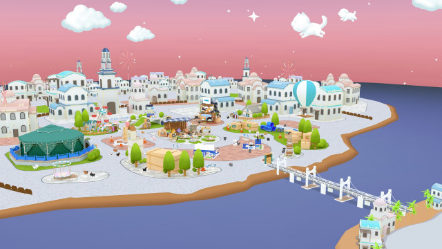 메인 광장에서는 나만의 반려동물 아바타를 움직여 다른 이용자들의 펫 캐릭터를 만날 수 있다. 캐릭터들이 가까워지면 친구 맺기와 실시간 채팅이 가능해진다.