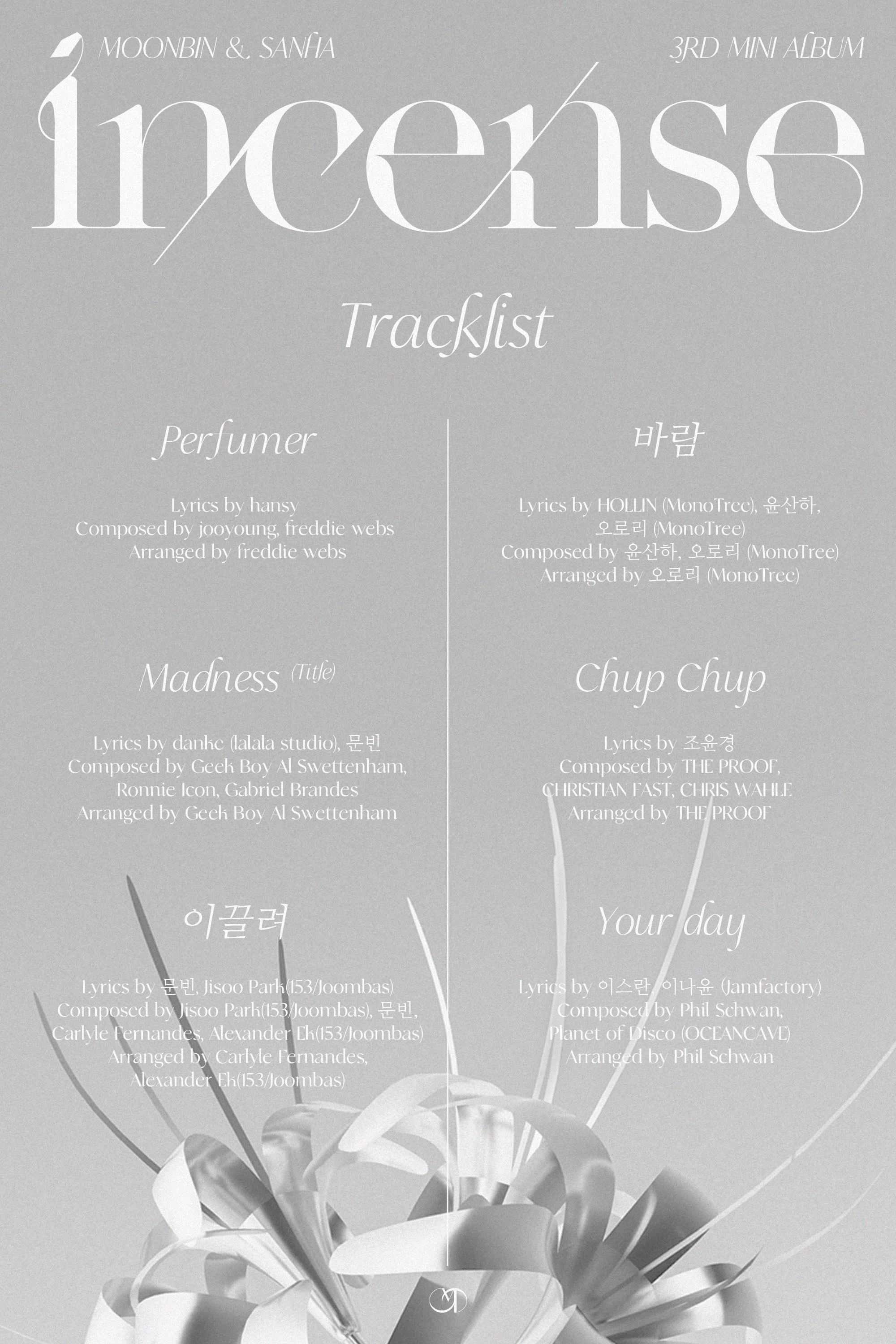 유니크한 앨범명과 곡명만으로 이목을 집중시킨 문빈&산하의 미니 3집 ‘INCENSE’는 오는 2023년 1월 4일 오후 6시 각종 온라인 음원 사이트를 통해 발매된다.