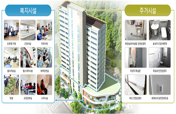 고령자 복지주택은 고령자의 주거안정을 위해 무장애 설계가 적용된 임대주택과 사회복지시설을 함께 조성하는 사업이다. 정부는 2027년까지 매년 1000호씩 총 5000호를 공급할 계획이다.