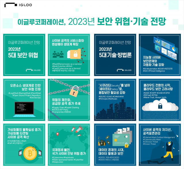 이글루코퍼레이션은 2023년 보안 위협에 대한 주요 예측을 담은 ‘2023년 보안 위협·기술 전망 보고서’를 발표했다.