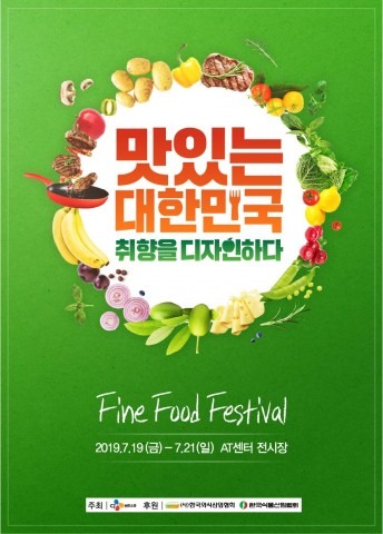 소비자의 LIFE STYLE과 NEEDS 그리고 식품소비 TREND를 반영한 식품산업 전시회인 ‘2019 Fine Food Festival’이 2019년 7월 19일(금)부터 21(일)까지 3일간 서울 양재동 aT센터에서 개최된다.