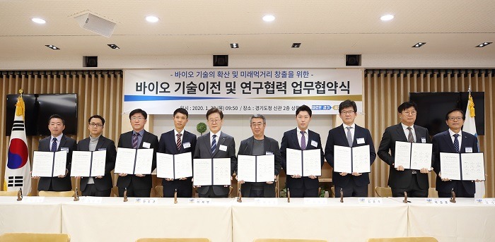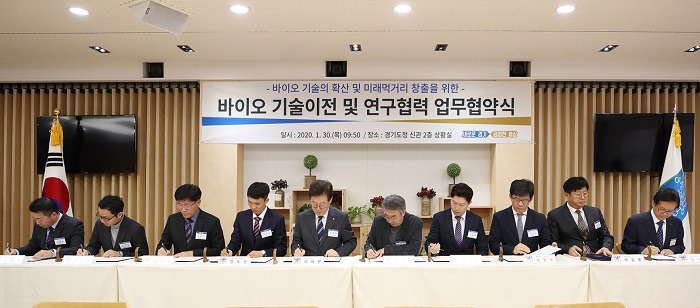 이번 협약식은 경기도가 지원하고 경제과학진흥원이 개발한 기술을 도내 바이오 기업에게 이전하고 신약 및 기능성제품 개발을 위한 연구협력을 도모하기 위해 마련됐다.