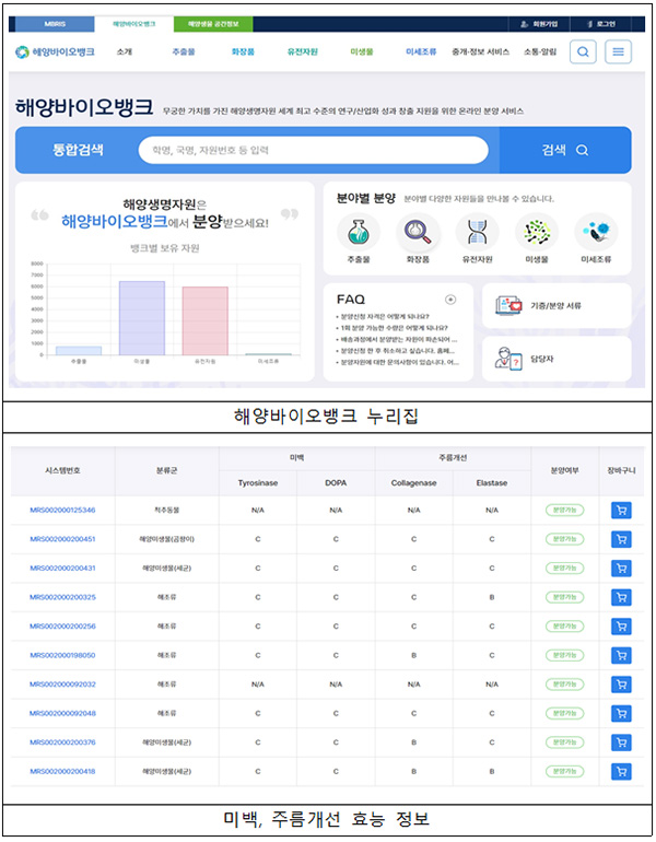 이들 화장품 제조에 활용되는 추출물 등 소재는 해양바이오뱅크 누리집을 이용해 누구나 분양받을 수 있다.
