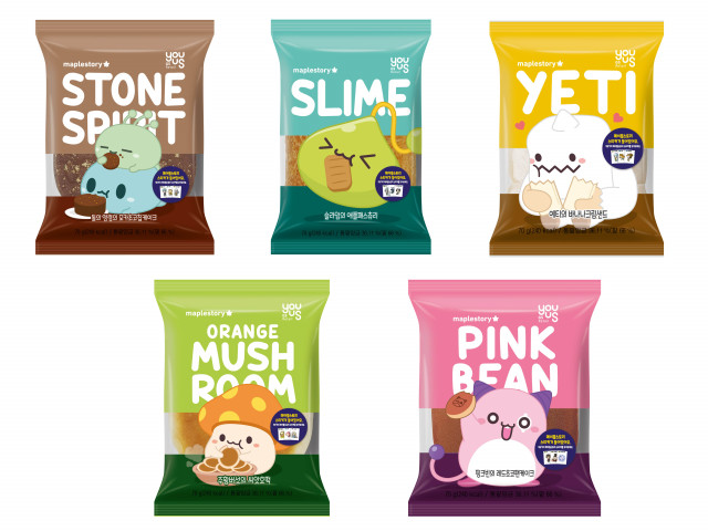 메이플스토리에서 인기 있는 캐릭터로 포장 패키지를 디자인했다. △돌의정령의초코콘 △예티의갈릭새우칩 △핑크빈의딸기별 △슬라임의카라멜치즈스틱 △주황버섯의계란과자 스낵류와 △예티의과일젤리 △핑크빈사우어젤리 등 상품에는 스티커가 아닌 색다른 82종의 딱지를 동봉해 새로운 아이템을 수집하는 재미를 제공한다.