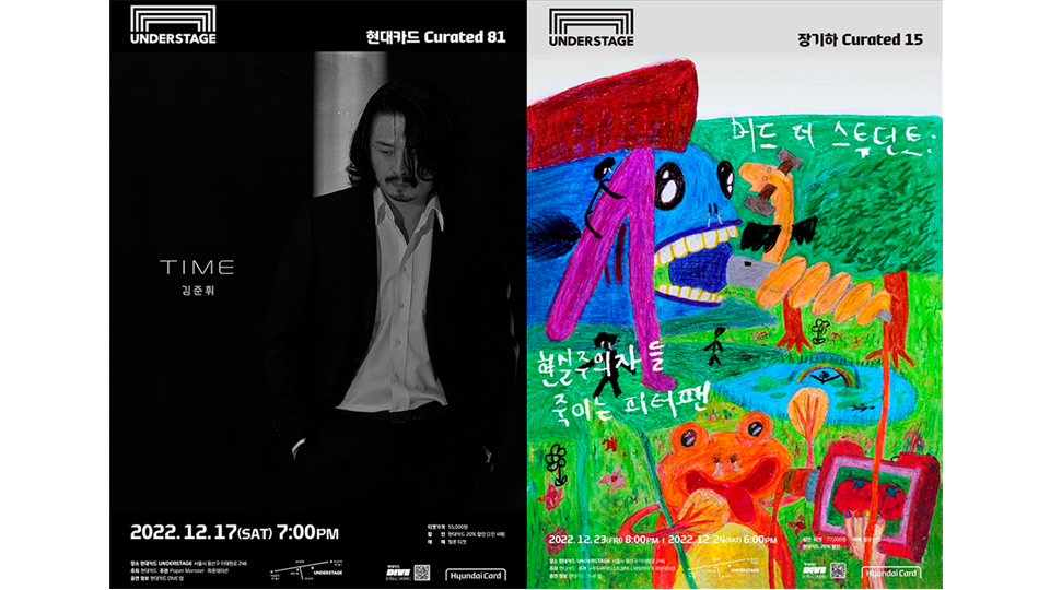 뮤직 라이브러리 지하 공연장 언더스테이지에서는 가수 김준휘, 머드 더 스튜던트(Mudd the Student)의 공연이 열린다. 17일 첫 단독 콘서트를 선보이는 김준휘는 JTBC <싱어게인>에서 ‘10호 가수’로 출연해 특유의 탁성으로 주목받은 뮤지션이다. 23일부터 이틀간 공연을 펼치는 머드 더 스튜던트는 ‘바밍타이거’ 소속의 2000년생 싱어송라이터로 <쇼미더머니 10>에서 준결승에 오른 실력파 아티스트다.