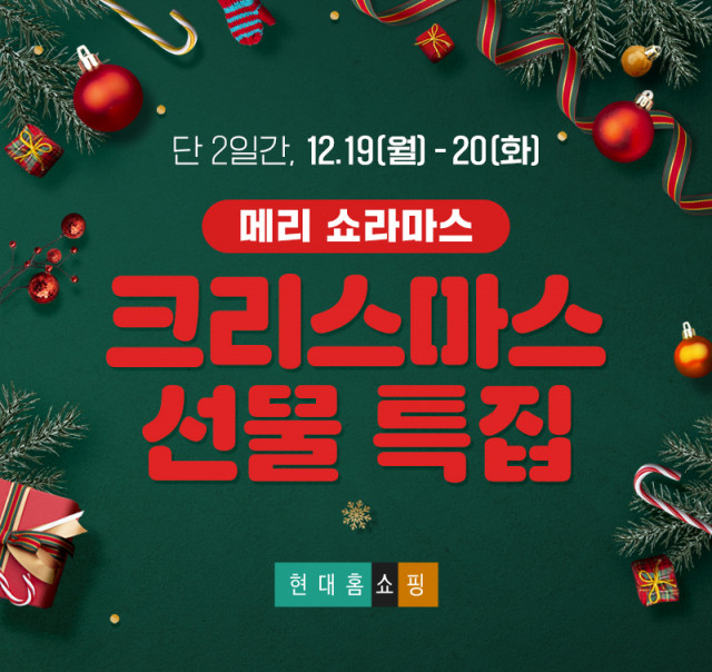 현대홈쇼핑은 공식 온라인몰 현대H몰 모바일 앱 내 라이브커머스 채널 ‘쇼라(쇼핑라이브)’에서 19~20일 이틀간 크리스마스 특집 할인 방송을 진행한다고 밝혔다.