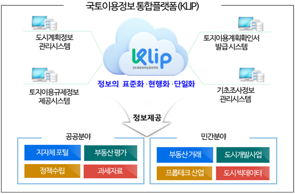 국토교통부는 국토이용정보 통합플랫폼(KLIP) 운영을 내년부터 단계적으로 시작한다고 19일 밝혔다.