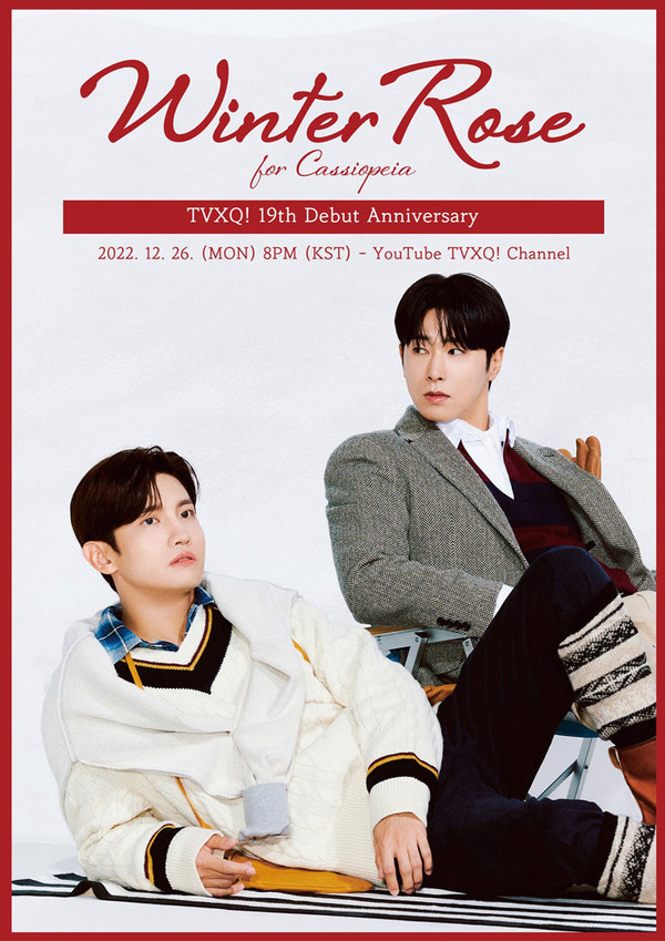 동방신기는 데뷔 기념일인 12월 26일 오후 8시부터 유튜브 동방신기 채널을 통해 생방송 ‘Winter Rose for Cassiopeia : TVXQ! 19th Debut Anniversary’(윈터 로즈 포 카시오페아 : TVXQ! 19th 데뷔 애니버서리)를 펼친다.