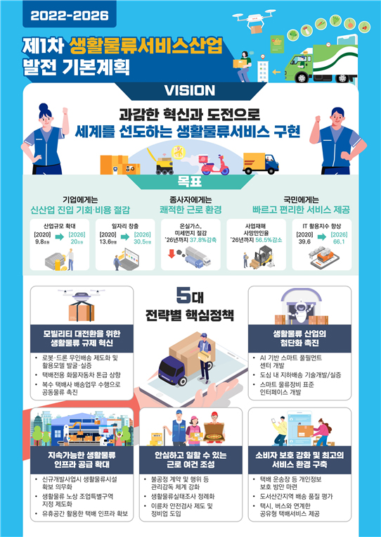 이를 통해 2026년까지 생활물류 산업 규모를 20조원으로 확대하고 관련 일자리도 30만 5000명으로 늘리겠다는 게 목표다.