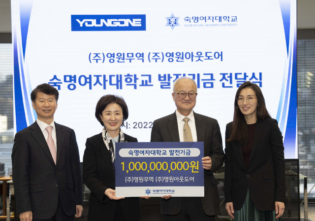 영원무역과 영원아웃도어가 숙명여자대학교에 산학연 발전기금 10억원을 기부했다.