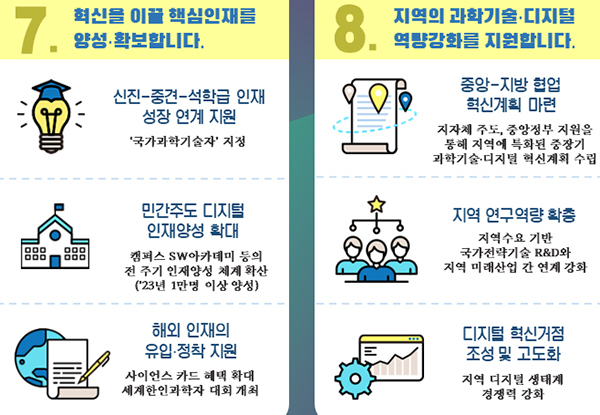 우리나라 과학기술과 디지털 혁신을 이끌 핵심인재를 양성·확보하고자 12대 전략기술 분야별·수준별 맞춤형 인재 양성을 추진한다.