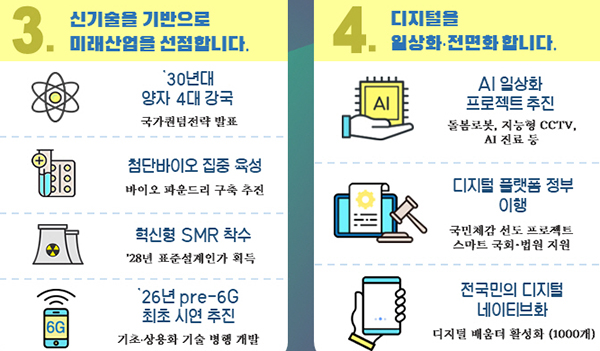아울러 AI 영재학교 신설과 과학기술 전문사관 확대 추진 등을 통해 미래세대도 육성한다.