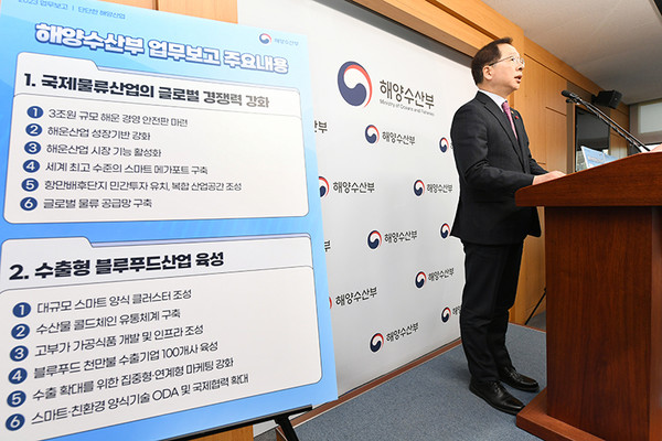 해수부는 4일 청와대 영빈관에서 이같은 내용의 2023년 해수부 업무계획을 윤석열 대통령에게 보고했다고 밝혔다.
