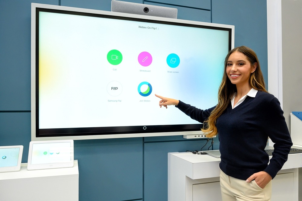 삼성전자는 글로벌 화상회의 솔루션 분야 리더인 시스코(CISCO)와 파트너십을 맺고 시스코 ‘웹엑스(Webex)’UX를 탑재한 ‘웹엑스 온 플립 (Webex on Flip)’을 출시한다.