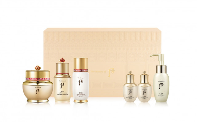 이번 설 세트에는 비첩 자생 에센스 20mL와 비첩 자윤 크림 60mL가 함께 구성됐다. 증정 제품으로는 후의 베스트셀러 라인 천기단의 화현 밸런서와 로션, 스킨케어 첫 단계에 생기를 깨워주는 비첩 순환 에센스와 천기단 화현 클렌징폼이 내장됐다.