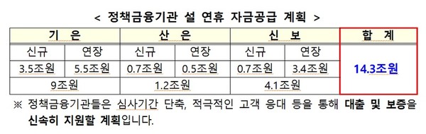 금융위에 따르면 기업은행은 원자재 대금결제, 임직원 급여와 상여금 등 운전자금 용도로 기업당 최대 3억 원(신규자금 총 3조 5000억 원 공급)까지 대출한다. 결제성 자금대출의 경우 0.3%p 내에서 금리인하 혜택도 제공한다.