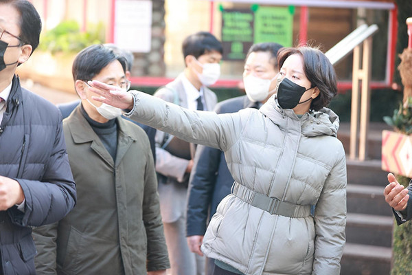 이영 중기부 장관이 지난 12일 이태원 관광 특구 연합회 등 지역 소상공인들과 함께 서울 용산구 이태원 상권을 둘러보고 있다. [사진=중소벤처기업부]
