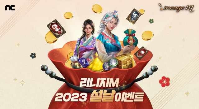 ’리니지M’은 설 기념 이벤트 3종을 진행한다. △이용자는 22일 ‘설 맞이 선물상자(이벤트)’를 푸시(Push)로 받는다. 상자를 열면 ‘떡국(이벤트)’, ‘세뱃돈 봉투(이벤트)’, ‘시간 충전석 선택 상자(이벤트)’ 등을 받는다. △25일까지 특수 던전 ‘검은 토끼의 숲’이 열린다. 이용자는 던전에서 획득한 이벤트 재화로 ‘설날 기념 변신 카드 상자(이벤트)’, ‘신비한 변신 뽑기팩(이벤트)’, ‘종합 코인 상자(이벤트)’를 제작할 수 있다. ‘설날 기념 변신 카드 상자(이벤트)’를 열면 신규 ‘검은 토끼 소녀’ 등 4종 중 1종의 변신 카드를 얻는다. △1월 18일부터 2월 22일 정기점검 전까지 ‘WELCOME 2023 시즌패스’를 게임 내 재화로 구매하면 28일 동안 매일 다양한 아이템을 획득한다.