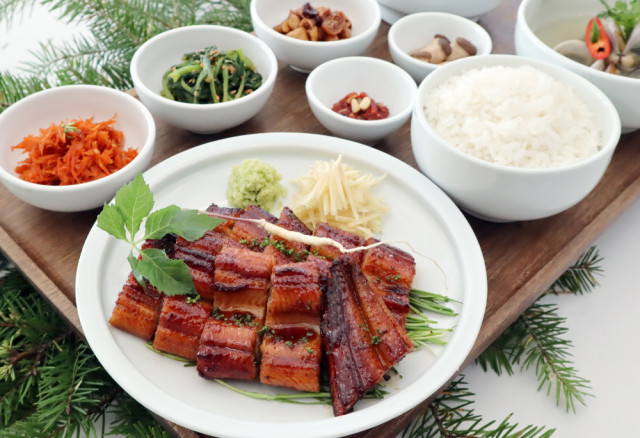 또 장어구이를 더 깔끔하게 즐길 수 있게 생강채와 고추냉이, 부추를 함께 곁들였고 시원한 모시조갯국과 젓갈, 제철 나물 등 다채로운 구성으로 기존 반상과는 차별화를 뒀다.