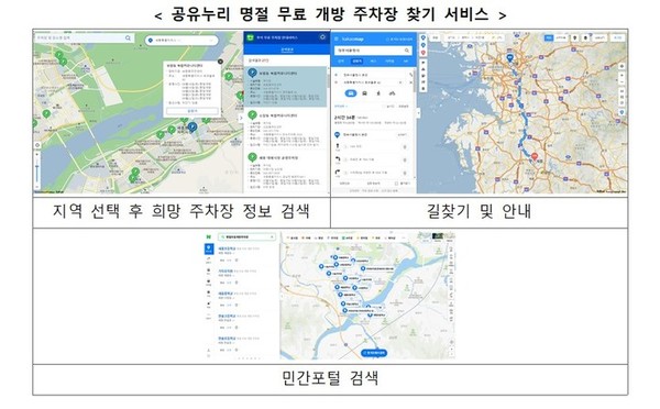 설 무료 개방 공공주차장 정보는 국민 이용편의를 위해 공유누리뿐 아니라 민간포털 네이버와 다음에서도 안내한다.