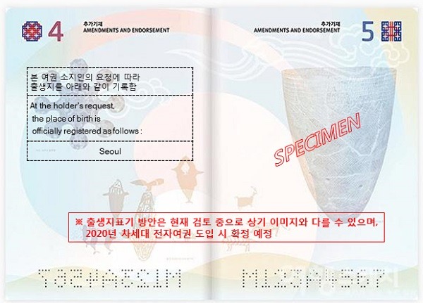 내년 하반기부터 본인이 원하면 전자여권에 출생지까지 표기 할 수 있게 된다.