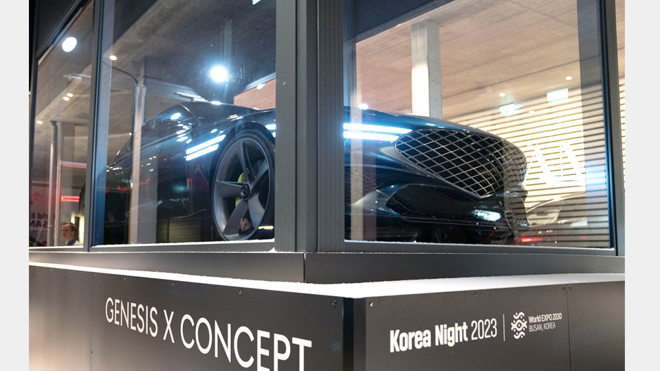 제네시스 엑스는 한국의 밤 행사장 입구에 전시돼 행사에 참석한 주요 인사들과 행사장을 이용하는 다양한 사람들에게 주목을 받으며, 자연스럽게 2030 세계박람회 개최 후보지인 부산을 알리고 한국 자동차의 비전도 전달했다.