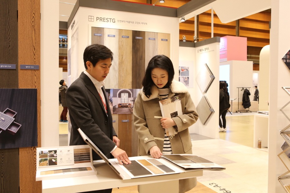 특히, 고급스러운 디자인은 물론 강한 내구성과 시공 편의성까지 갖춰 호텔 공간 바닥재로 인기를 끌고 있는 '프레스티지'와 화재 안전성을 위해 호텔 등 특정소방대상물에 의무적으로 사용해야 하는 방염 벽지는 관람객들로부터 큰 관심을 받고 있다.