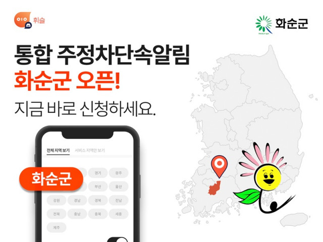 스마트한 운전자를 위한 지역 통합 주정차 단속 사전 알림 앱 ‘휘슬(Whistle)’이 호남권 최초로 전라남도 화순군에 서비스를 오픈했다.