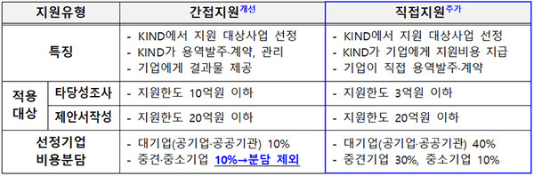 이에 따라 올해부터는 타당성 조사 등의 지원 시 소규모 지원을 확대하며 중견·중소기업은 비용 분담에서 제외해 중소기업에 대한 지원을 늘리기로 했다.