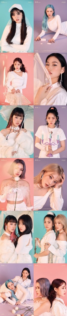 ‘DAZZLING FUNERAL'(대즐링 퓨너럴)이라는 문구와 함께 공개된 사진 속 위키미키는 화이트 의상에 포인트가 되는 파스텔톤 헤어와 강렬한 아이 메이크업으로 각자의 매력을 살려 이목을 집중시킨다. 빈티지한 컬러를 배경으로 무심하게 카메라를 응시하는 도발적인 시선은 미스터리하면서도 신비스러운 분위기를 자아낸다. 망사가 달린 볼캡, 미니어처 관, 촛불 등의 소품이 궁금증을 자극하는 가운데 화려한 색감과 반짝이는 액세서리는 오묘한 조화를 이루며 위키미키의 변신에 대한 궁금증을 증폭시킨다.