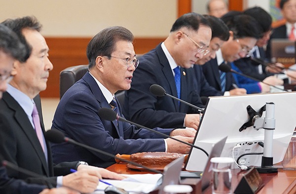 문 대통령은 이날 청와대에서 주재한 국무회의 모두발언에서 “정부는 방역에 최선을 다하면서도 코로나19가 주고 있는 경제적 타격에 그야말로 비상경제 시국이라는 상황 인식을 가지고 엄중하게 대처해야 한다”면서 이같이 밝혔다.