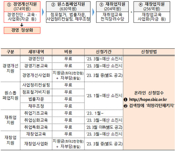 2023년 희망리턴패키지 주요 내용. [자료=중소벤처기업부 제공]