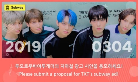 TXT의 지하철 광고는 3월 한 달 동안 유동인구가 많은 2호선 홍대입구역 5번, 9번 출구에서 집행될 예정이며, 현재 팬들은 뮤빗을 통해 광고 제작 시안을 응모할 수 있다.
