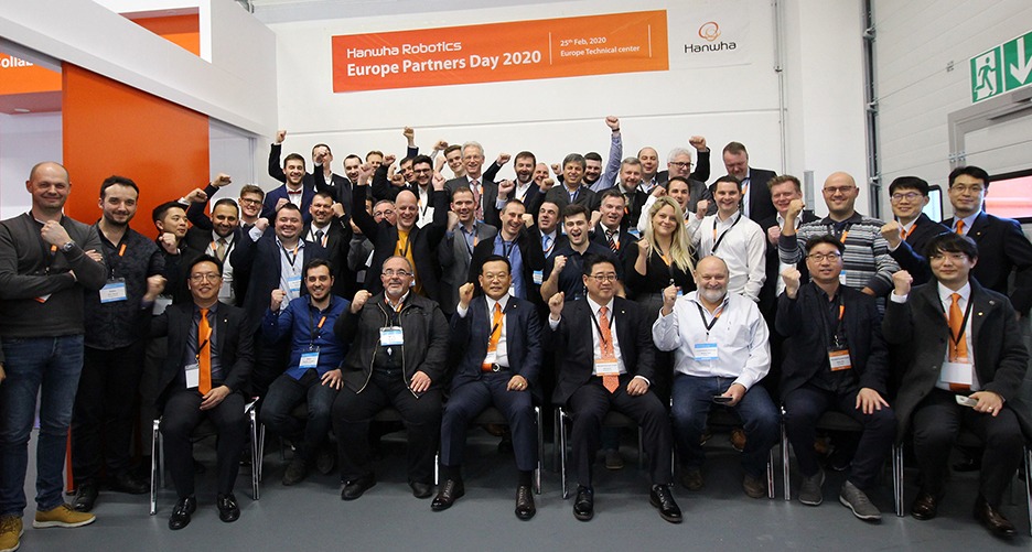 '유럽 파트너스 데이 2020'은 한화정밀기계 협동로봇과 관계자들이 현지에서 모여 글로벌 사업 현황과 비전을 공유하기 위한 행사다.