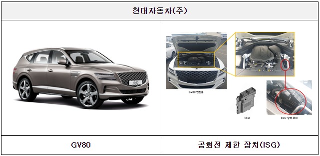 첫째, 현대자동차㈜에서 제작, 판매한 GV80 차종 823대는 Stop & Go 장치(ISG)*의 소프트웨어 오류로 변속이 정상적으로 되지 않을 가능성이 확인되어 시정조치(리콜)에 들어간다.