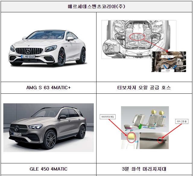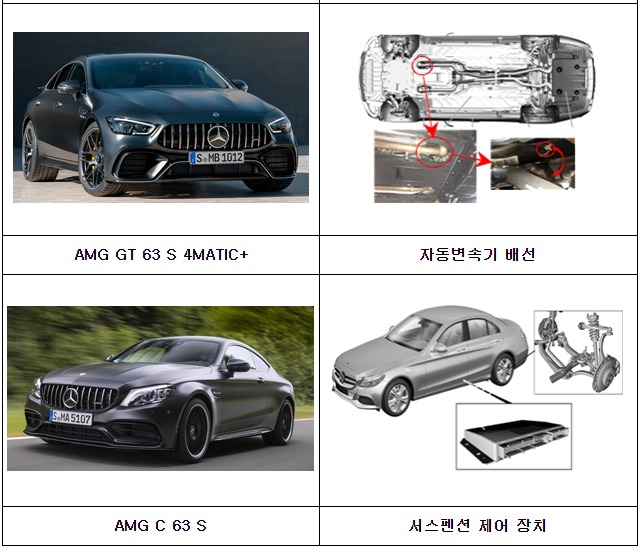 둘째, 메르세데스-벤츠코리아㈜에서 수입, 판매(판매이전 포함)한 AMG E 63 4MATIC+ Long 등 12개 차종 441대는 4가지 시정조치(리콜)를 실시한다.