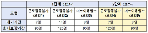 또한 2단계 시범사업에서는 대상자들의 특성상 현실적으로 유급병가를 적용받기 어려운 점을 반영해 비교적 단기의 대기기간(3일, 7일) 모형을 운영할 예정이다.