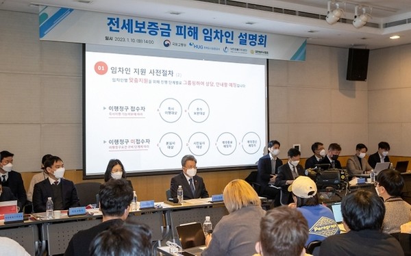 김효정 국토부 전세피해지원단장은 “정부는 전세사기 피해 임차인들의 조속한 일상회복을 위해 피해자 지원과 재발방지에 최선을 다하겠다”며 “임대차 계약 전 단계의 제도적 취약점을 개선해 전세사기를 예방하고 피해를 체계적으로 지원하기 위한 추가대책을 발표할 계획”이라고 밝혔다.