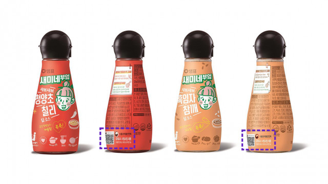 우리 맛 연구 중심 샘표가 새미네부엌 샤브샤브 딥소스 2종(청양초 칠리·흑임자 참깨)에 ‘e-라벨(QR코드)’을 도입했다.