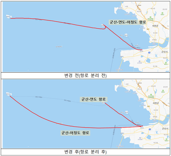 군산-연도-어청도 항로 분리...군산-어청도 항로, 직항으로 시간 단축