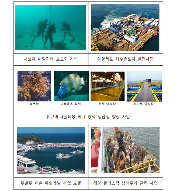 대상국가는 7개 국가로 85억 원 규모의 7개 사업으로 진행된다. 산호초 생태계 보호를 위한 사모아 해양산성화 관측 고도화사업(6억 원), 군소도서국 맞춤형 재생에너지 개발을 위한 마셜제도 해수온도차 발전사업(8억 원) 등이 대표적이다.