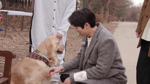 제작보고회를 마치고 서울숲 나들이에 나선 두 사람! 산책 중 영화 속 두 형제가 사랑하는 반려견 루니와 똑 닮은 리트리버를 만난 유연석과 차태현은 '멍뭉이' 주연 배우들답게 푹 빠진 모습을 보였다는 후문.