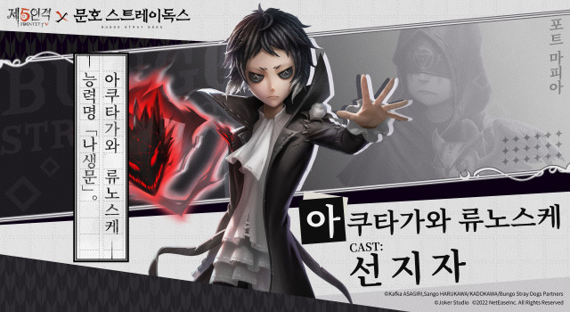 넷이즈 게임즈 최초의 1 vs 4 비대칭 대전형 멀티플레이 게임 ‘제5인격(Identity V)’과 인기 미스터리 애니메이션 ‘문호 스트레이독스’의 컬래버 제2탄이 시작된다.