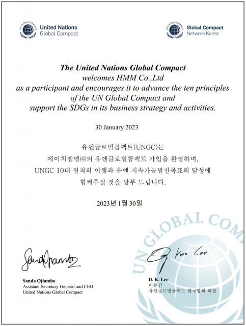 HMM은 이번 UNGC 가입으로 ESG 핵심추진과제 중 하나인 ‘책임 있는 인권경영’을 추진해 전사적 ESG 경영 역량을 향상시킬 계획이다.
