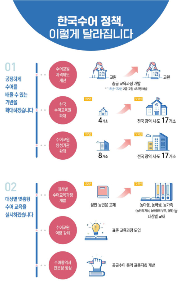 우선 농인 등을 위한 한국수어교육원과 한국수어교원 양성을 위한 교육기관을 각각 17곳(전국 17개 광역시·도별 1곳)으로 확대한다.