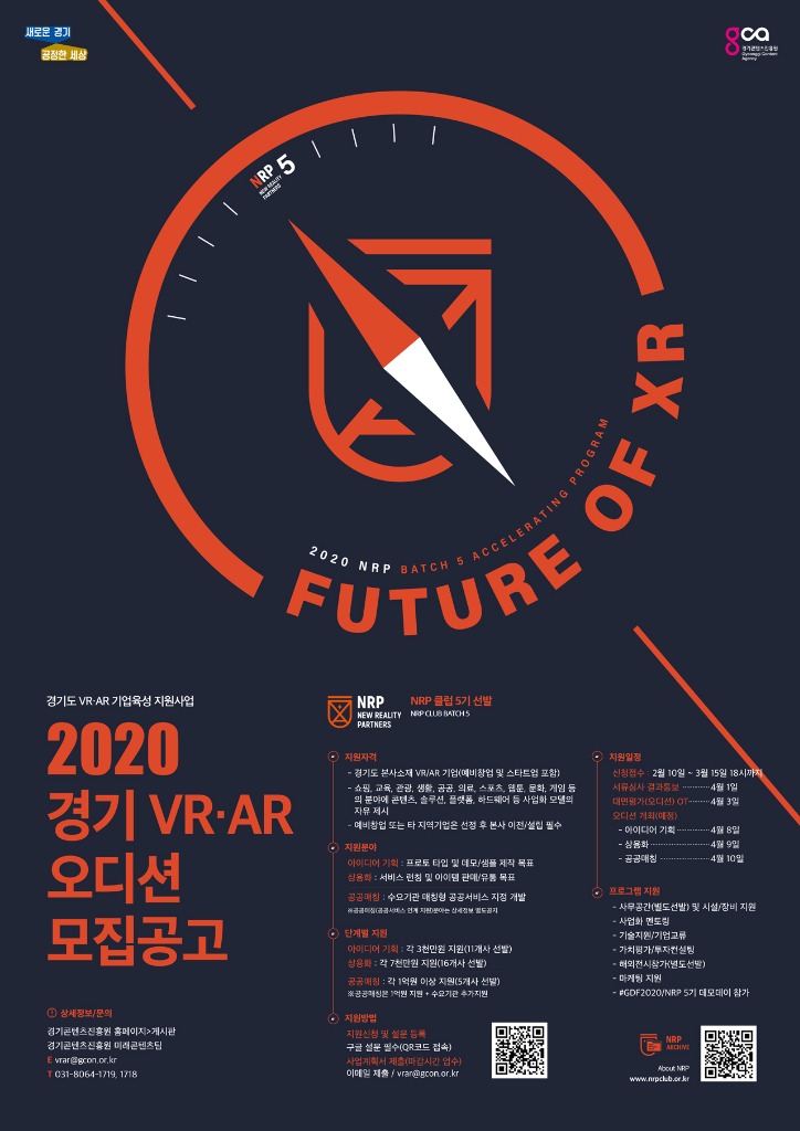 자세한 사항은 경기콘텐츠진흥원 사업공고를 참고하거나 경기콘텐츠진흥원 미래콘텐츠팀(031-8064-1718~9)으로 문의하면 된다.