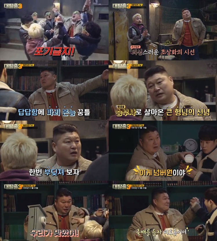 이처럼 강호동은 ‘대탈출3’을 통해 어엿한 ‘프로탈출러’이자 맏형으로서 곳곳에서 든든한 활약을 펼쳐 눈길을 끌었다. 명불허전 파괴 본능으로 웃음을 챙기는 것도 잠시, 의견이 분분할 때는 단호하게 결정을 내리고, 멤버들이 좌절할 때는 ‘모든 것이 단서다’, ‘초조해 하지 말자’고 외치는 등 특유의 섬세함으로 모두의 사기를 북돋아 주며 탈출에 한 걸음씩 다가간 것.
